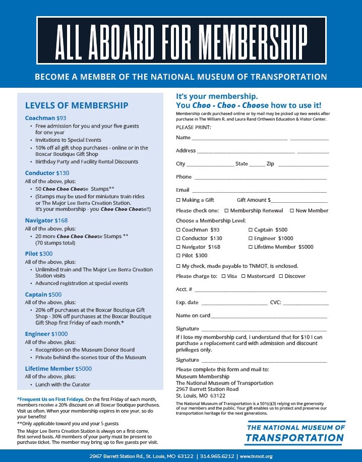 All memberships include admission for member and up to five guests per visit, special event invitations, 10% off all gift shop purchases, and birthday party and facility rental discounts. Members (including membership renewals) who join online will receive their membership postcard in the mail. (Note: The Creation Station is first-come, first-served, and the entire party needs to be present to secure boarding passes.)